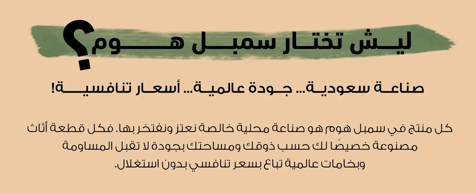 بخبرة امتدت إلى عشر سنوات في مجال صناعة الأثاث نحن في سمبل هوم نصنع جميع أنواع الأثاث المنزلي والمكتبي في مصانع سمبل هوم للاثاث العصرى الحديث ،أثاث مصنوع بأيدي سعودية 100%، مصمم خصيصا بجودة عالية ويتم مراجعته ومعاينته بعناية قبل أن يتم اعتماد المنتج ليكون أحد منتجات سمبل هوم . وتركنا لكم حرية اختيار خامات الاقمشة والوانها ومقاسات المنتجات وخامات الرخام والوانها لتتمكنوا من تصميم منتجاتكم حسب الرغبة بأفضل سعر.