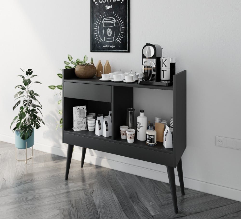 الوصف: ركن قهوة لون أسود بدرج بتصميم بسيط وعملي، يناسب الاستخدام اليومي ويضبط مع أغلب ديكورات البيت.