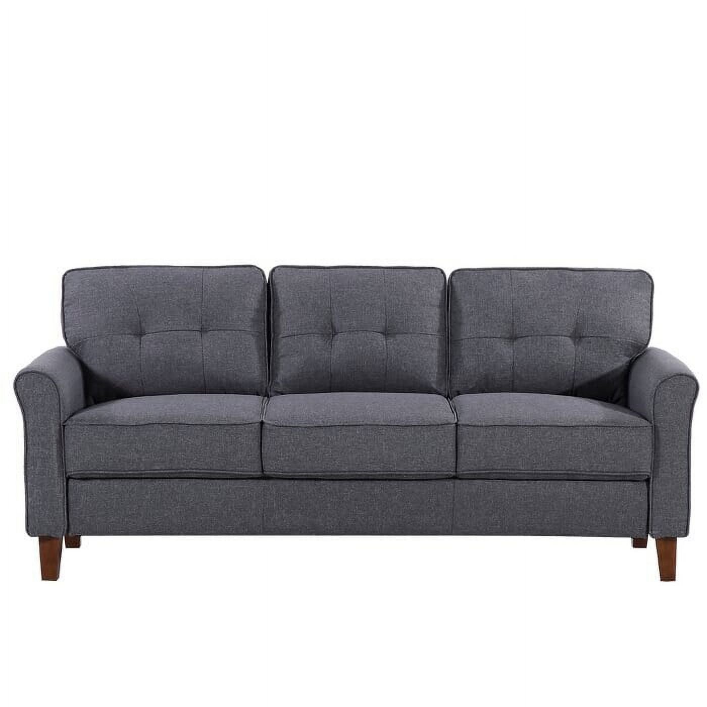 كنبة ثلاث مقاعد واسعة بذراع من الكتان باللون رصاصي الداكن