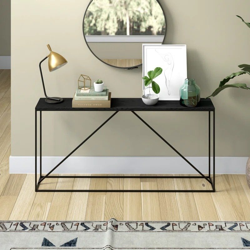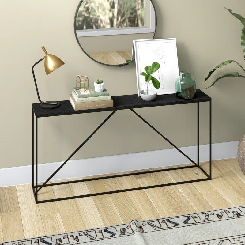 الاستخدام: تصميمها النحيف يجعلها مثالية كـ طاولة مدخل كونسول في المساحات الضيقة، أو خلف الأرائك الصغيرة.