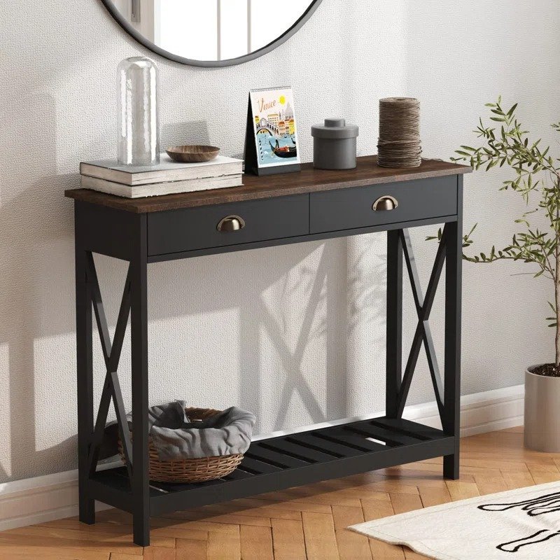 طاولة كونسول خشب مع درج تخزين وإطار جانبي